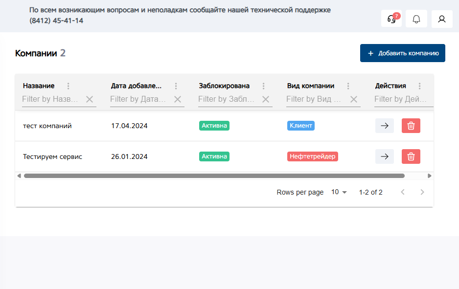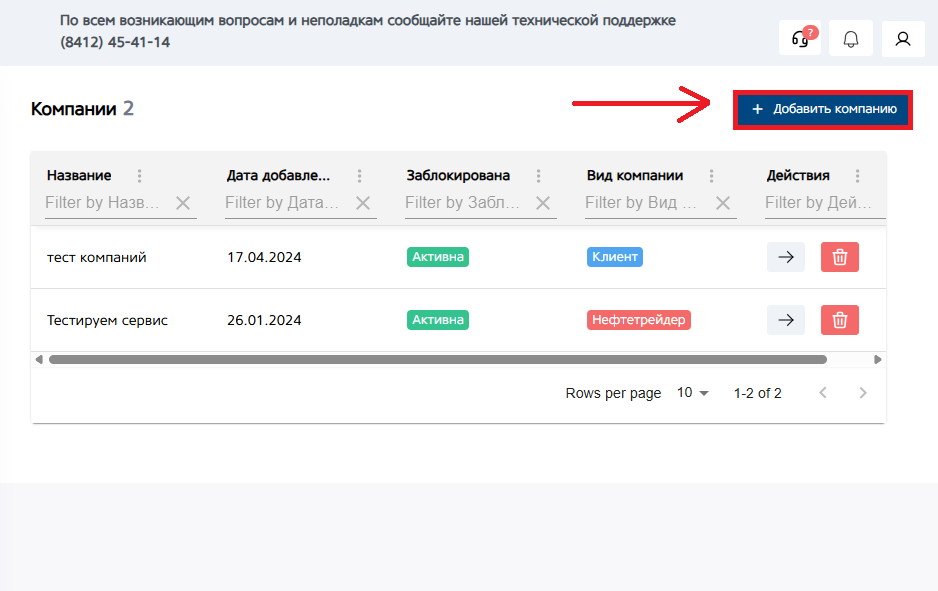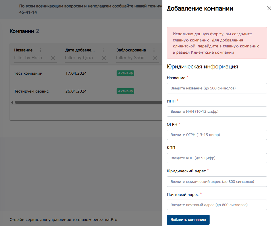 *Поля помеченные «звездочкой» обязательные для заполнения.После заполнения всех обязательных полей, нажмите кнопку «Добавить компанию».