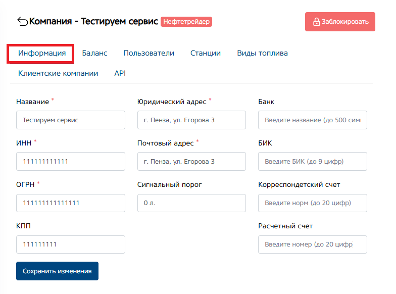 (При изменении названия компании, во всех полях в сервисе, где используется название компании – будет произведена замена)