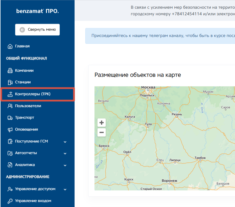 Топливо. При нажатии на кнопку откроется список всех видов топлива. Выберите вид топлива, который будет привязан к контроллеру.