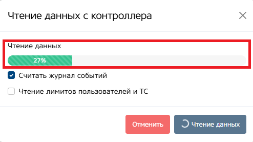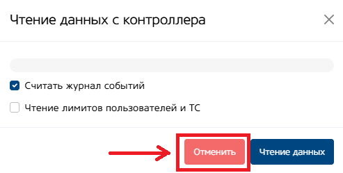 Кнопка «Отменить». При нажатии на кнопку произойдёт отмена запущенного чтения данных.