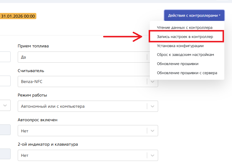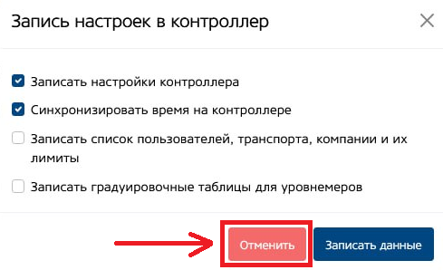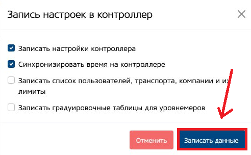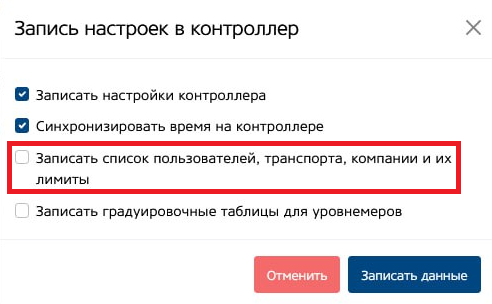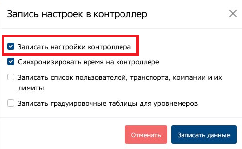 Записать настройки контроллера. Галочка отвечает только за запись настроек контроллера, например изменение юстировочного коэффициента, добавления уровнемера и т.д. В общем все те настройки, которые можно изменить в настройках контроллера.