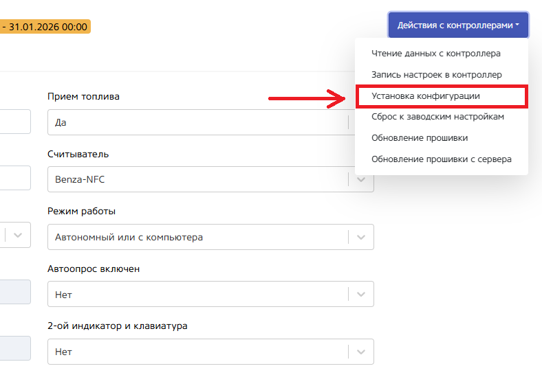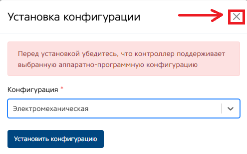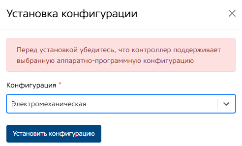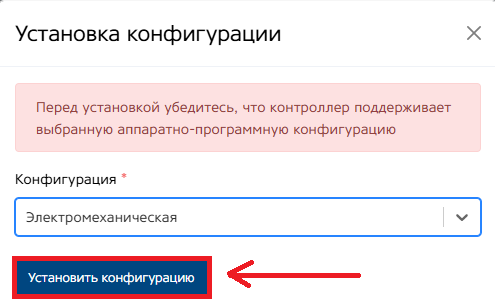 Кнопка «Установить конфигурацию». При нажатии на кнопку установится выбранный тип конфигурации контроллера.