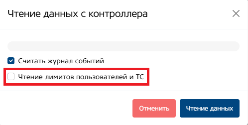 Чтение лимитов пользователей и ТС. Данную галочку можно не ставить, т.к. чтение лимитов так же происходит с установленной галочкой «Считать журнал событий». В последующих обновлениях галочка будет удалена.