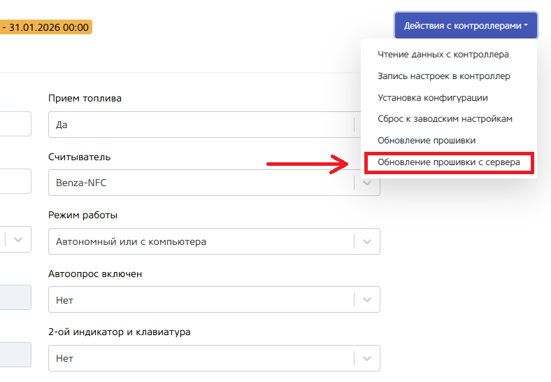 При нажатии на кнопку «Обновление прошивки с сервера» откроется меню с возможностью обновления прошивки с сервера.