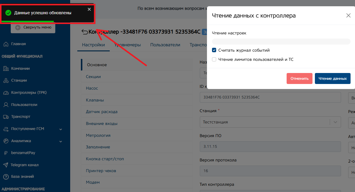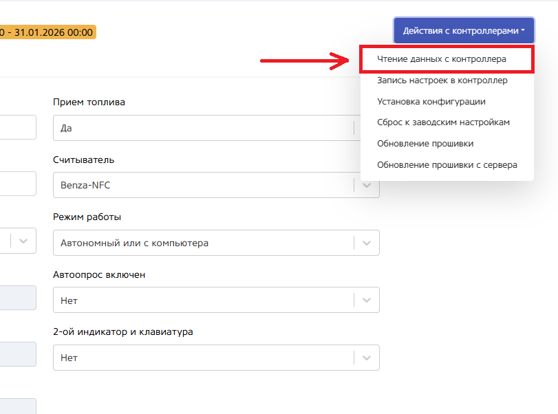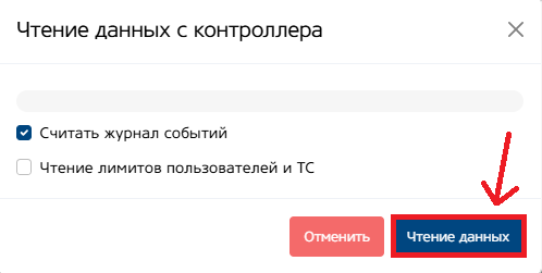 При нажатии на кнопку «Чтение данных с контроллера» откроется меню чтения данных с контроллера.