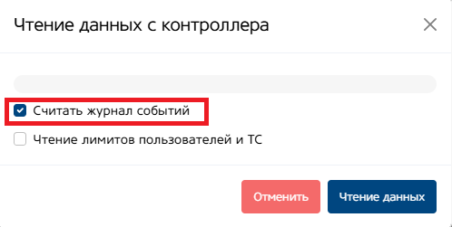 Считать журнал событий. Это основная галочка, при открытии окна она уже будет установлена. С помощью ее считываются все данные с контроллера.