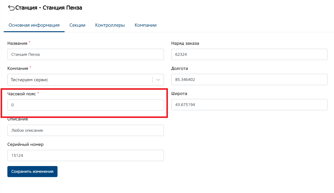 !ВНИМАНИЕ! Данные времени подтягиваются из станции, к которой привязан контроллер. Если часовой пояс указан не верно – запишется некорректное время.