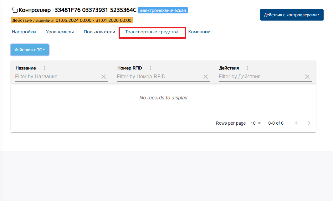 Во вкладке «транспортные средства» мы можем добавить ТС, которым будет позволено заправляться на контроллере.