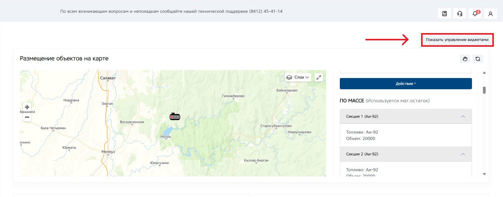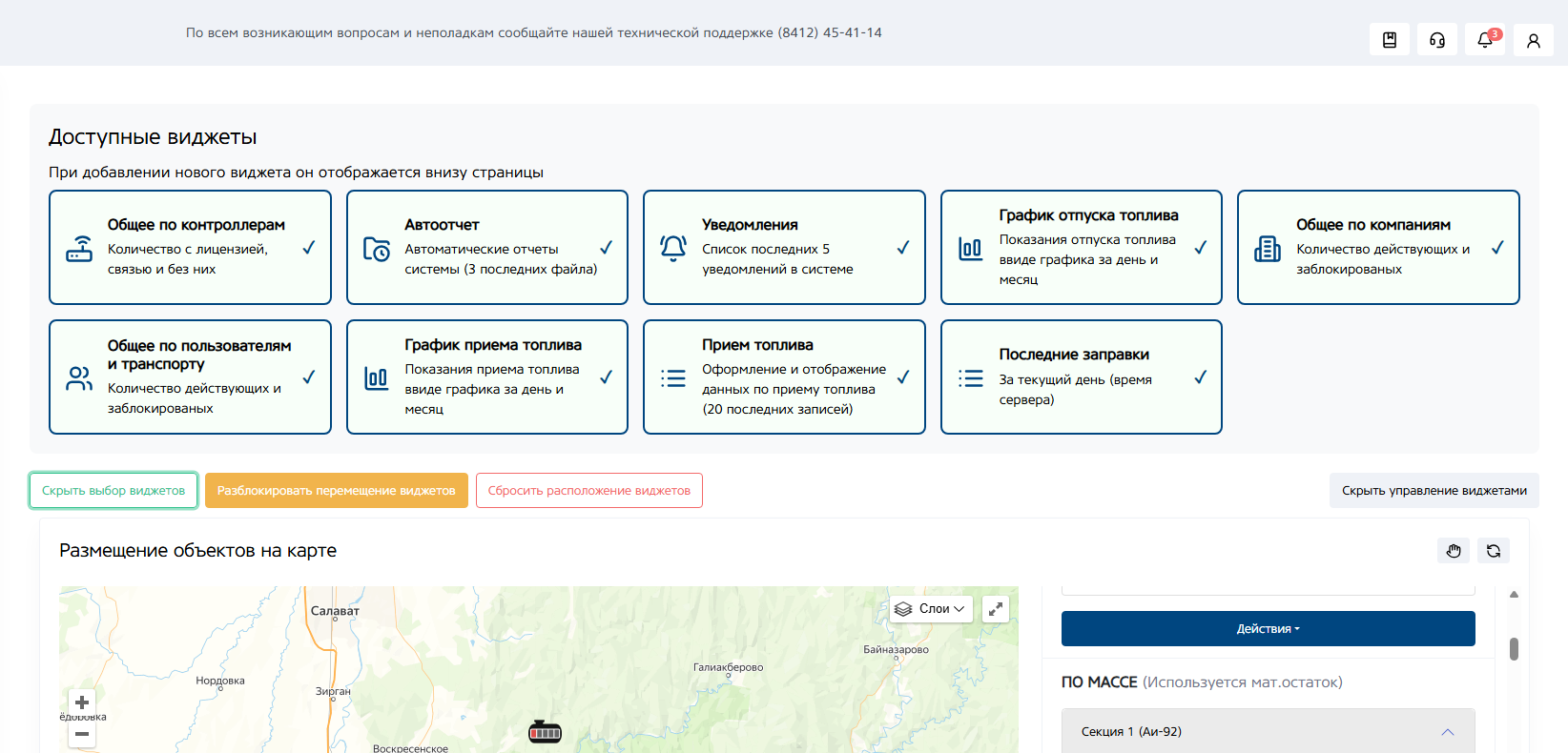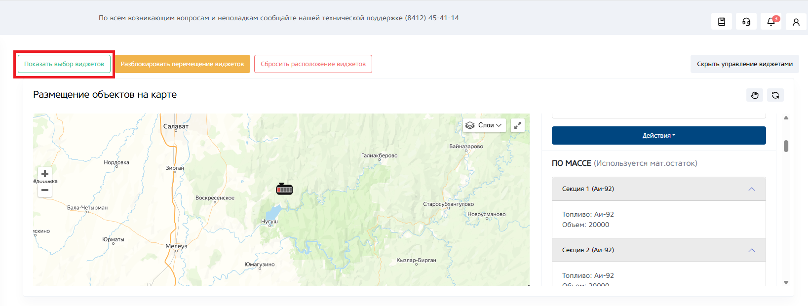 Виджет — это функциональный модуль, который является дополнительным контентом или инструментом на веб-странице. Простыми словами, это элемент интерфейса, решающий узкую задачу: показывает карту, поступления или отпуск топлива.