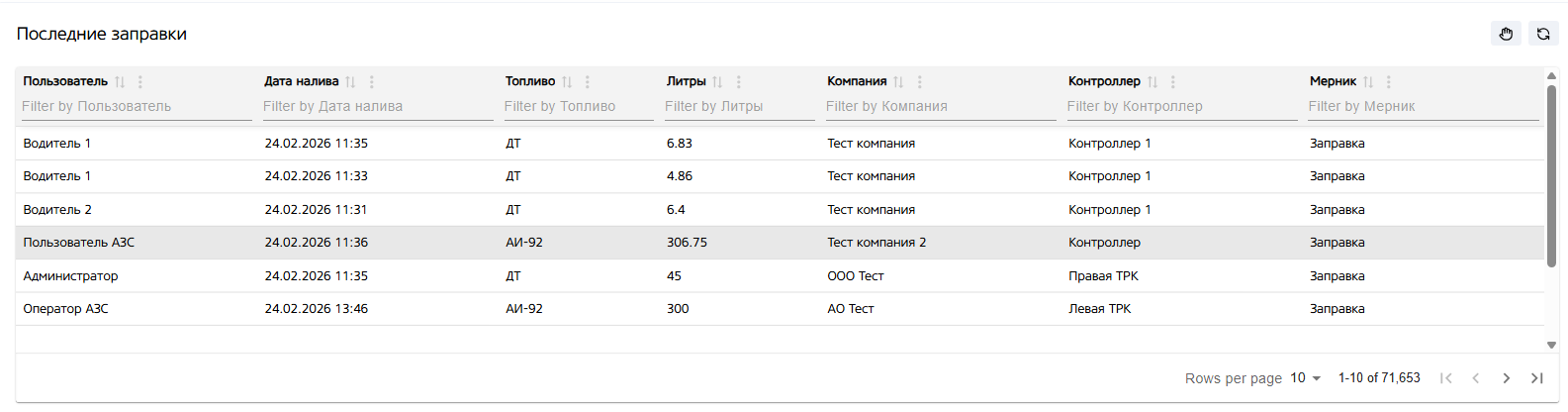 - Последние заправки