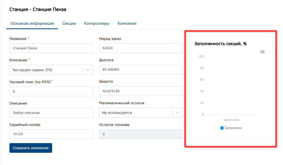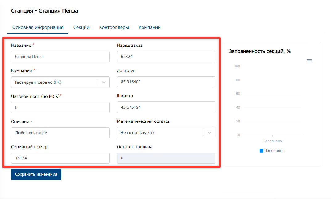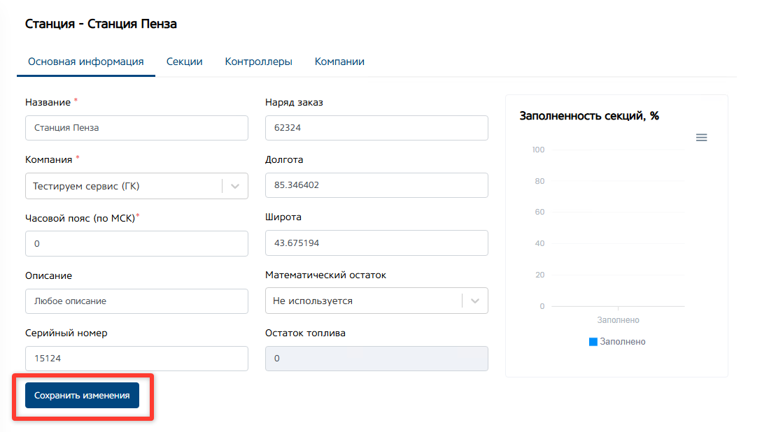 Кнопка «Сохранить изменения». После внесения изменений в описание станции, нажмите кнопку «Сохранить изменения».