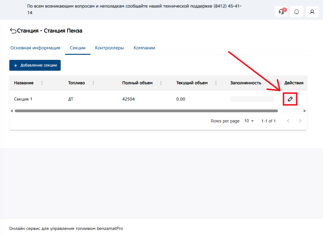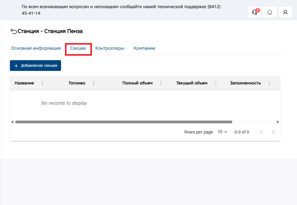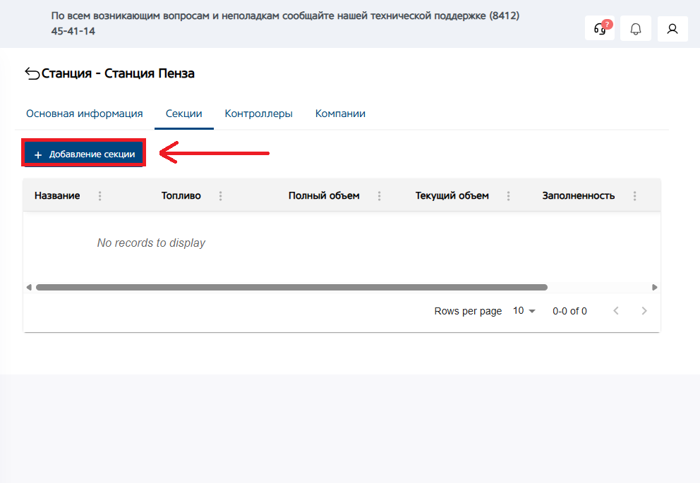 Меню изменения данных имеет те же поля, что и при добавлении секции. Но после добавления секции, мы можем привязать к ней Уровнемер и Рукав. Возможность выбора уровнемера и рукава появится, после добавления контроллера в текущую станцию и секцию, т.е. эта настройка производится после добавления контроллера. (подробнее смотрите в руководстве по добавлению контроллера)