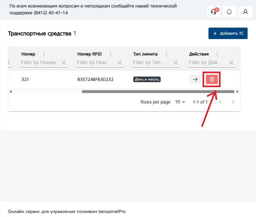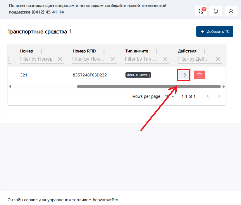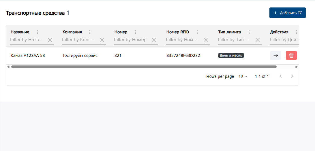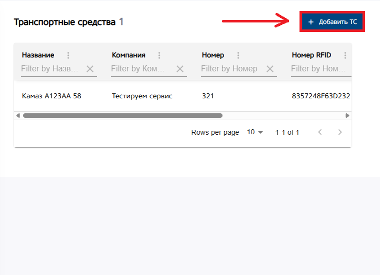 Кнопка «Добавить ТС». При нажатии на кнопку откроется меню, с возможностью добалвения нового транспортного средства.