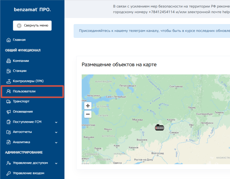 Доступ к ЛК (личному кабинету «benzamat® ПРО.»). Данный раздел отвечает за возможность входа пользователя в сервис.