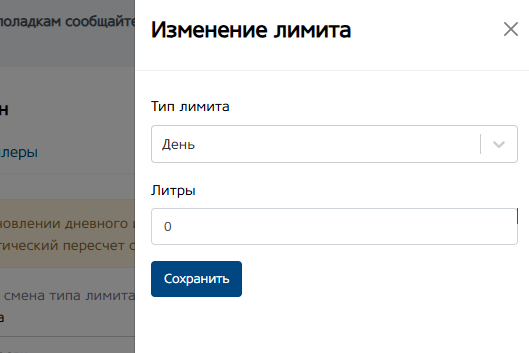 В этом меню необходимо выбрать тип лимита и указать лимит в литрах.