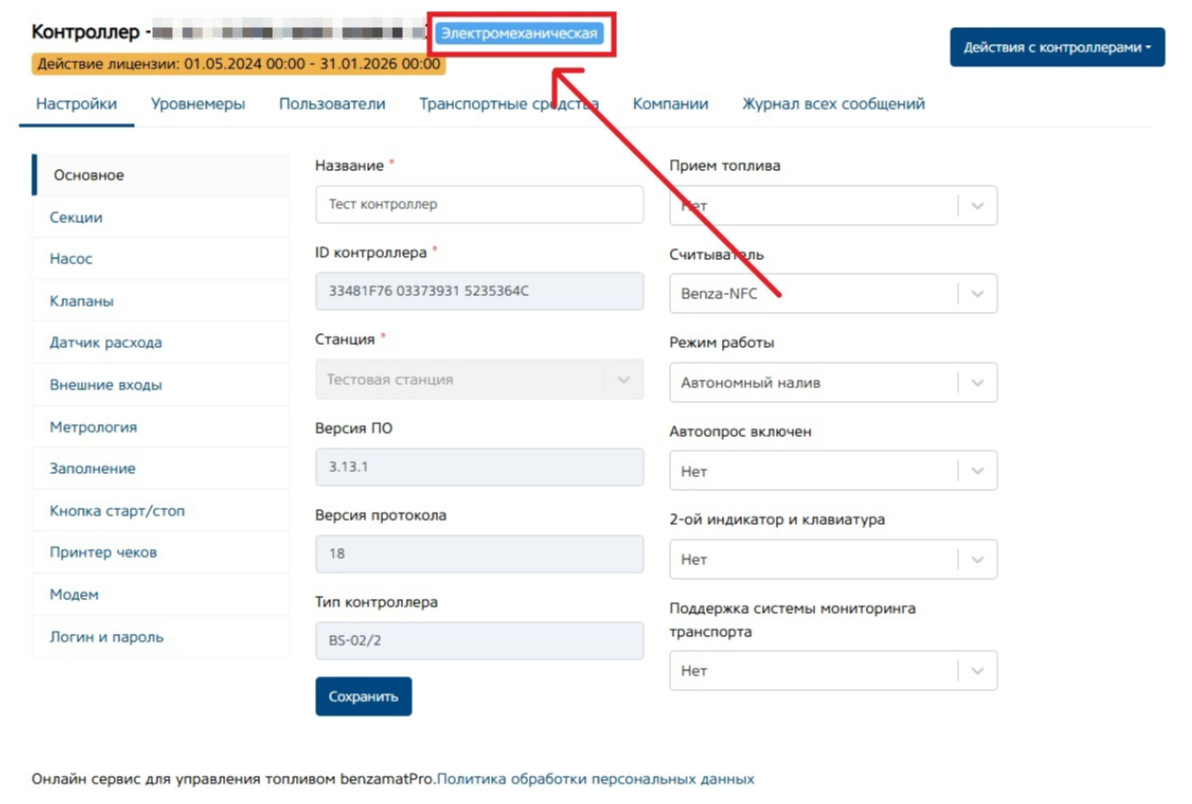 Обратите внимание на режим работы контроллера. Если у вас установлен установлен НЕ «Электромеханический» режим работы, этих настроек у вас не будет. Т.к. в других режимах работы контроллер только дает команду сторонней ТРК на выполнение каких то действий (например включить насос, открыть клапана), сам он их не выполняет. В других режимах нужно смотреть настройки ТРК в специализированной программе для вашей модели ТРК.