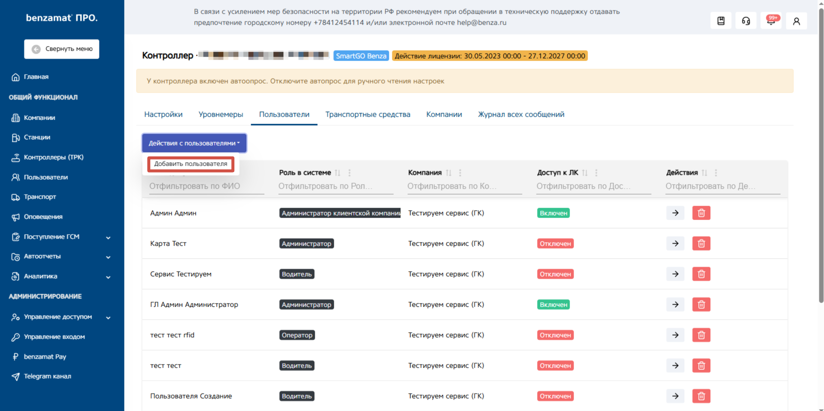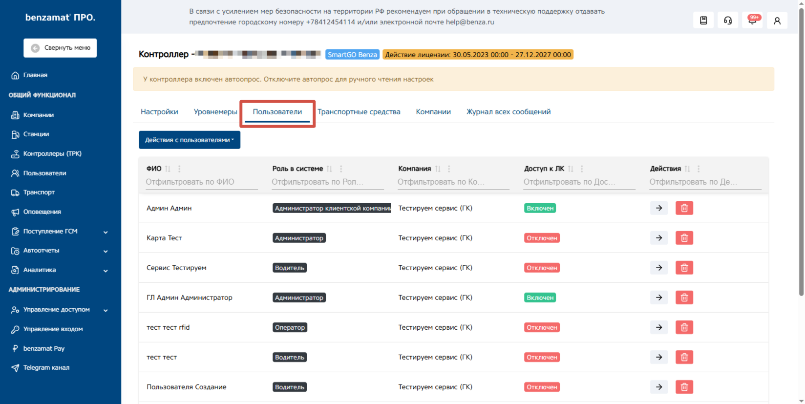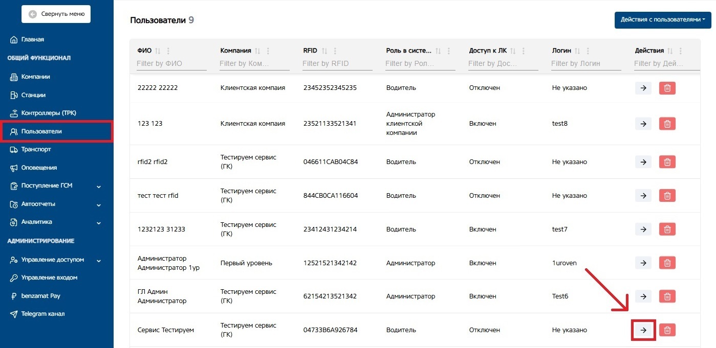 Инструкция описана для карты пользователя, для транспорта действия аналогичны. Откройте раздел «Пользователи» и откройте настройки пользователя, у которого произошла ошибка.