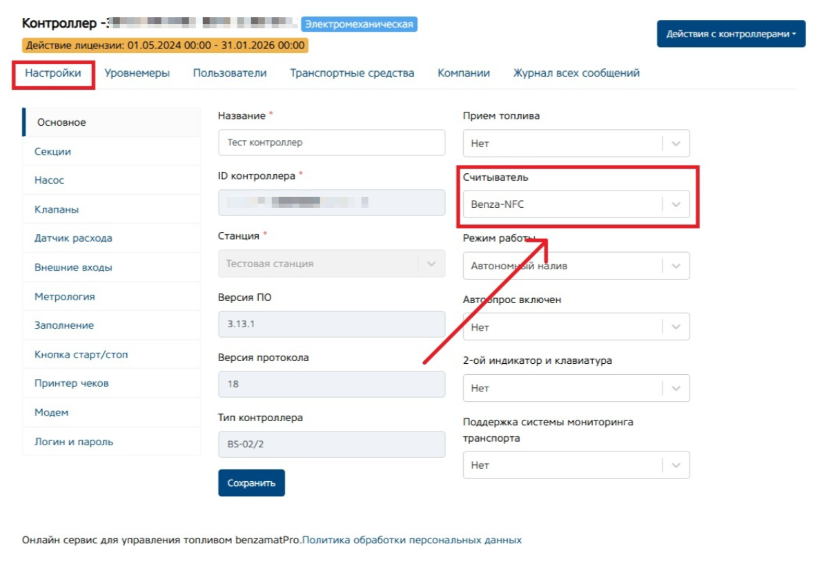 Перейдите во вкладу «Настройки». Убедитесь, что в разделе «Считыватель» установлен ваш тип считывателя. Если настройки не соответствует фактическому считывателю — измените тип считывателя, нажмите на кнопку «Сохранить».