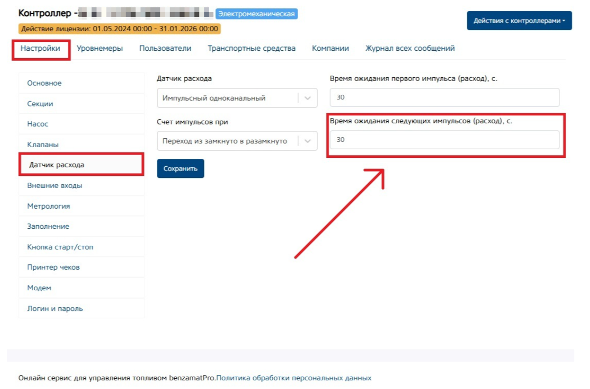 Краткое описание: в ТРК установлен генератор импульсов, в процессе выдачи топлива он создает импульсы и передает их в контроллер. Таким образом контроллер понимает, что происходит выдача топлива и считает выданное топливо. По умолчанию контроллер ожидает импульсы в течении 30 секунд. Также есть отдельная настройка для последующих импульсов, эта настройка отвечает за ожидание контроллера, когда топливо начали выдавать, остановили подачу топлива (например отжали пистолет) но заданная доза полностью не выдалась.