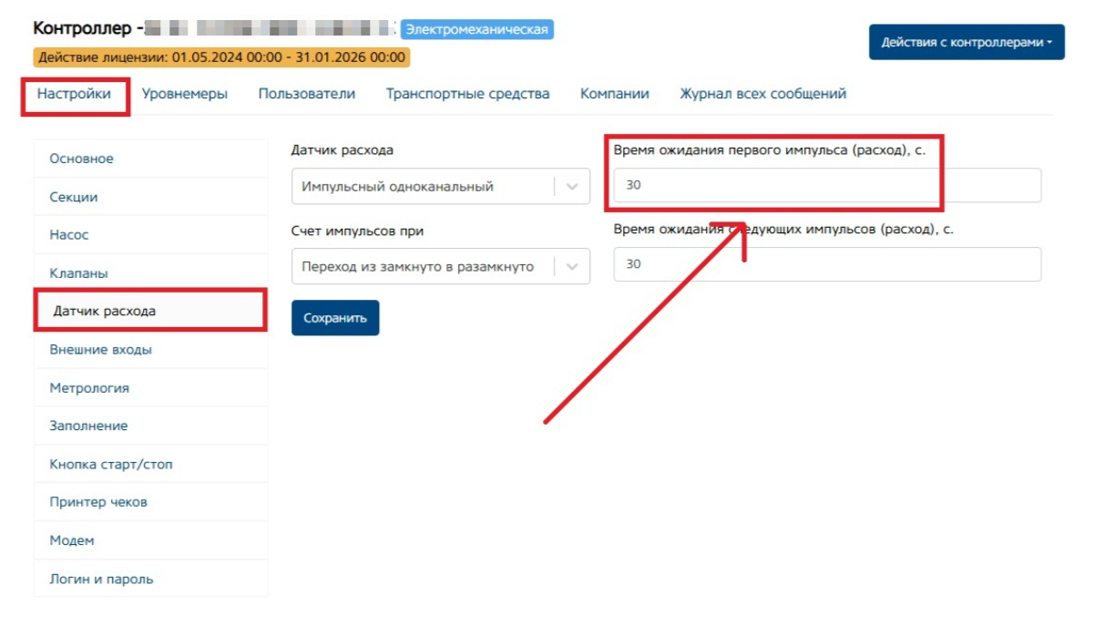 Если в момент запуска выдачи топлива (когда вы приложите карту, задали дозу и на табло начинает отображаться выданное топливо) не начнете выдачу топлива в течении этого времени — контроллер выдаст ошибку. Если по каким то причинам вам недостаточно этого времени, вы можете увеличить время.